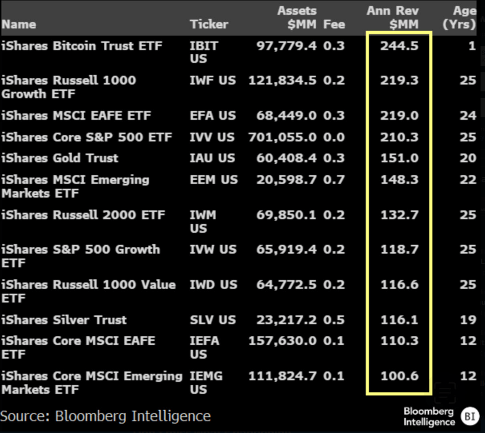 Chỉ trong hơn một năm kể từ khi ra mắt, quỹ đã tạo ra khoảng 244 đô la doanh thu hàng năm, được thúc đẩy bởi dòng chảy ổn định và phí quản lý 0,25%. Sự gia tăng nhanh chóng này đã khiến IBIT trở thành một trong những sản phẩm sinh lợi nhất trong đội hình của Blackrock.